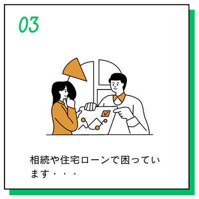 不動産に関しては、相続や住宅ローン、隣接地との境界など、さまざまな問題があります。朋友では、不動産に関するあらゆる問題へのご相談を承っております。